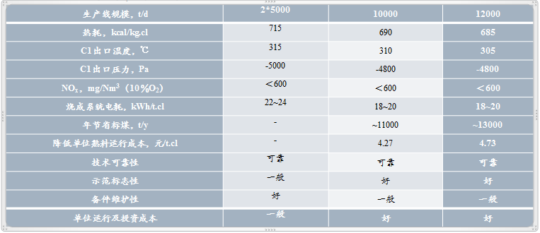 2*5000t/d与10000t/d生产线的的特征技术指标对比表