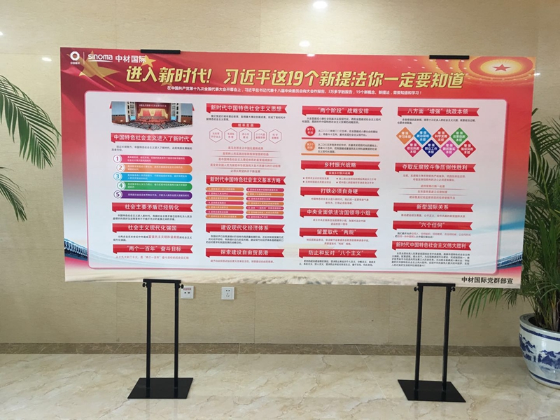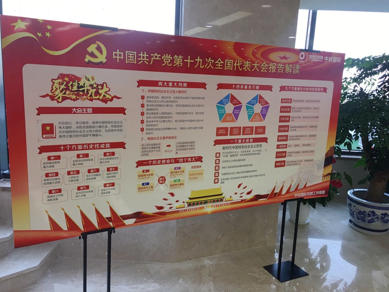 目前,党委中心组自学交流阶段的学习正在进行中。中心组给每一位成员都发放了十九大报告原文、修订后的《中国共产党章程》和《党的十九大报告辅导读本》等学习资料,在公司内网开辟了“新时代、新征程、新篇章”的十九大学习专栏、制作了十九大精神专题学习展板,中心组成员全部参加所在党支部的学习并交流学习体会,有的中心组成员还利用参加培训学习和考察调研的机会开展十九大精神的宣贯和交流。