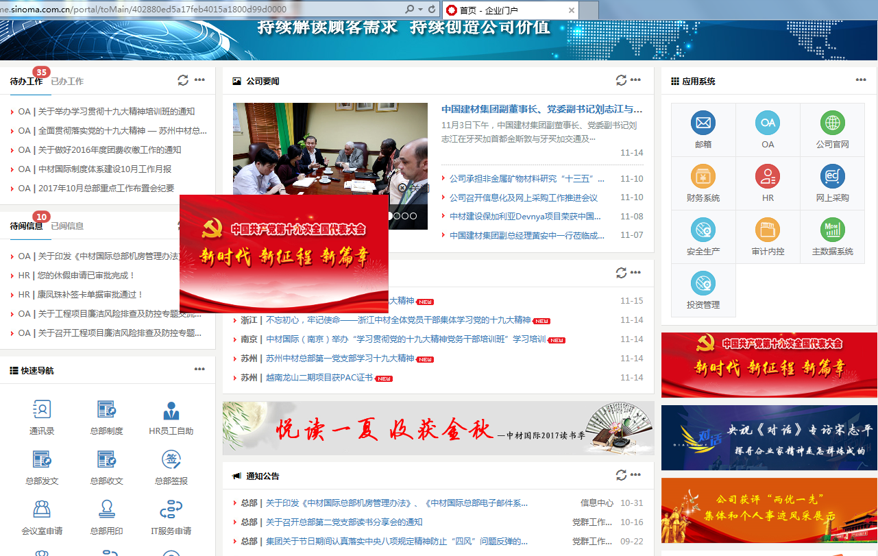 党的十九大召开后,公司上下掀起学习十九大精神的热潮,公司总部、所属业务板块、国内外项目现场的学习都在热烈的开展当中。公司党委中心组作为党的理论学习机构,将十九大精神学习作为当前和今后一段时间的一项重要政治任务和主要学习内容,党委主要负责人亲自部署,分管副书记牵头推进,定计划、做方案,学原文、看解读,读报告、谈体会。党委中心组十九大精神专题学习正按照自学交流和集中研讨两个阶段的安排在深入推进。