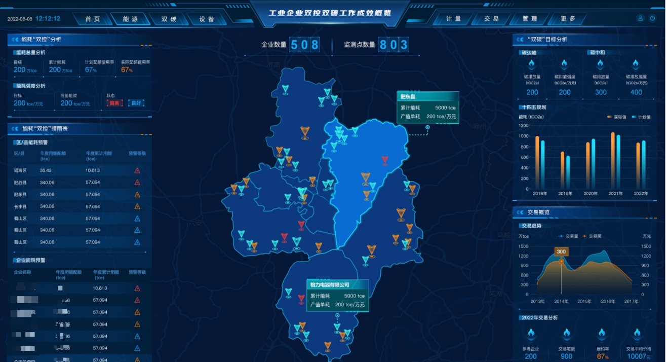 区域能碳双控平台融合了数字化智能化手段,在碳资产管理的基础上,精准量化考核指标,实行配额管理,制定减碳策略,寻求多评价维度的减碳方案。管理企业计量器具信息,采集监控计量数据,多维度分析区域计量审查和计量器具配备情况,为企业提供精确的数据支持。此外,它还具备能源消耗监控、碳资产监控功能,实现对不同行业企业碳排放的精细化管理。在节能量交易方面,实现从下发配额到核定履约的系列流程线上管理。智能管控设备信息,提供定期效能评价,确保设备运行效率得到有效提升。面向企业、政府提供能源、“双碳”领域的特色型工业互联网平台服务。
