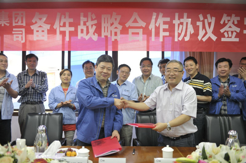 备件公司作为中材装备集团旗下负责国内外备件供应、设备维修、售后延伸服务的核心企业,为国内外客户提供全厂备件 “一揽子现货仓储、物流配送、专业保障服务”,积极倡导“超市化备件供应、专业化解决方案”经营理念,拥有良好的市场网络和开拓能力;重齿公司是专业从事高精度、硬齿面齿轮箱、联轴节、减速机等多产品研制,并广泛应用于建材、水电、火电、核电和风力发电等多行业的中央大型企业,尤其在高端、大型、精品硬齿面减速机制造方面一直引领行业技术的发展。双方在以往良好合作的基础上,为进一步拓展后续服务市场(后续备机、备件、整机维修),充分发挥双方所长,本着互惠互利、优势互补、共同发展的原则,就后续服务市场备机备件销售和维修服务达成合作协议。
