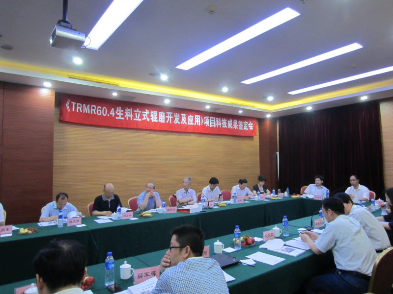 担任此次鉴定会委员的由来自中国建材联合会、中国水泥协会、中国建材机械协会、南京院、合肥院、华新水泥、北京凯盛、华润水泥等单位粉磨方面的专家组成。原国家建材局科技司谢泽司长担任鉴定委员会主任。评审专家组经过研究审查,充分讨论后一致通过了TRMR60.4大型立式磨粉磨技术的研究及装备项目鉴定。同时鉴定委员会认为该设备的研发不仅填补了国内6000~7000吨级水泥熟料生产线配套单台生料立式辊磨的空白,同时首次采用CFD计算机模拟分析技术、并开发了新型轴承密封技术,提高了大型化磨辊轴承密封的可靠性;同时研发了自吸式轴承冷却装置,改善了选粉机下轴承工作环境,有利于延长轴承的使用寿命,降低维修成本;同时研发的新型选粉机转子密封间隙可调装置,保证了大型化选粉机转子密封加工、装配及安装精度,提高产品合格率。