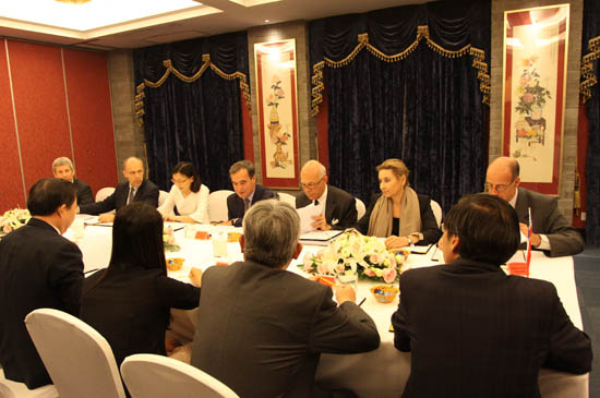 拉法基集团执行副总裁Jean DESAZARS、Christian HERRAULT、Alexandra Rocca,拉法基集团战略投资经理Jean-Louis TOUATI,拉法基中国首席执行官Sylvain Garnaud ;中材股份副总裁、董事会秘书顾超,中材股份副总裁、尊龙凯时董事长王伟,尊龙凯时副总裁、中材装备集团董事长宋寿顺,尊龙凯时副总裁、尊龙凯时天津公司董事长彭建新,尊龙凯时副总裁童来苟等参加会谈。