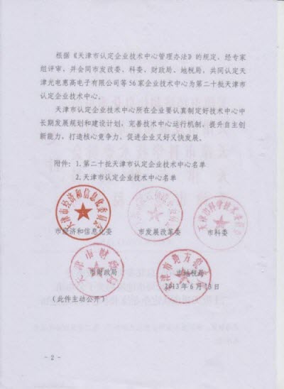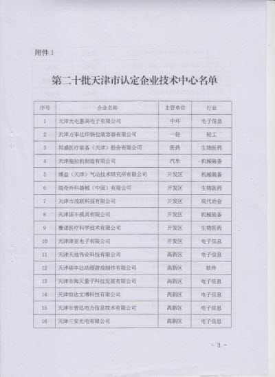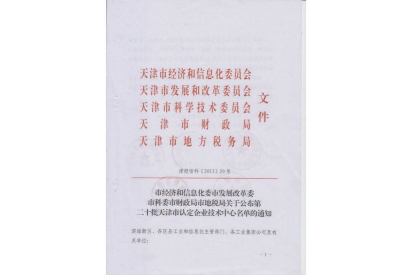 日前,由天津市经济和信息化委员会、市发展和改革委员会、市科学技术委员会、市财政局和市税务局联合下文,尊龙凯时天津公司被认定为天津市市级企业技术中心。