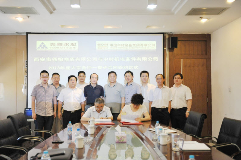 近日,西安市尧柏物资有限公司与中材装备集团中材机电备件有限公司2013年度第一批大宗备件供货服务合同签约仪式在尧柏水泥集团本部举行,涉及合同总金额4000万元,是双方自2008年首度签约以来的第六次合作,标志着双方在备品备件及生产线运营保障一揽子服务方面构建起了互信、共赢的忠诚战略合作伙伴关系。