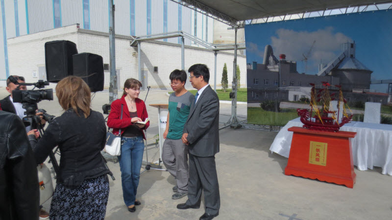 典礼期间,徐培涛及业主方总经理SHMATOV先生分别代表承包方和业主方在现场服务完成接收单、预验收证书、最终验收证书上签字,这标志着项目的圆满完成。徐培涛还接受了梁赞州电视台及新闻报纸记者的采访,他简要介绍了公司在俄罗斯市场的项目建设情况及公司在俄罗斯市场的战略和长远规划。