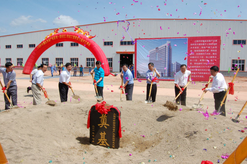 最后,刘峰宣布上饶中材研发大楼正式开工。在一片祥和的氛围中,与会领导同擎金锹,为上饶中材研发大楼奠基。