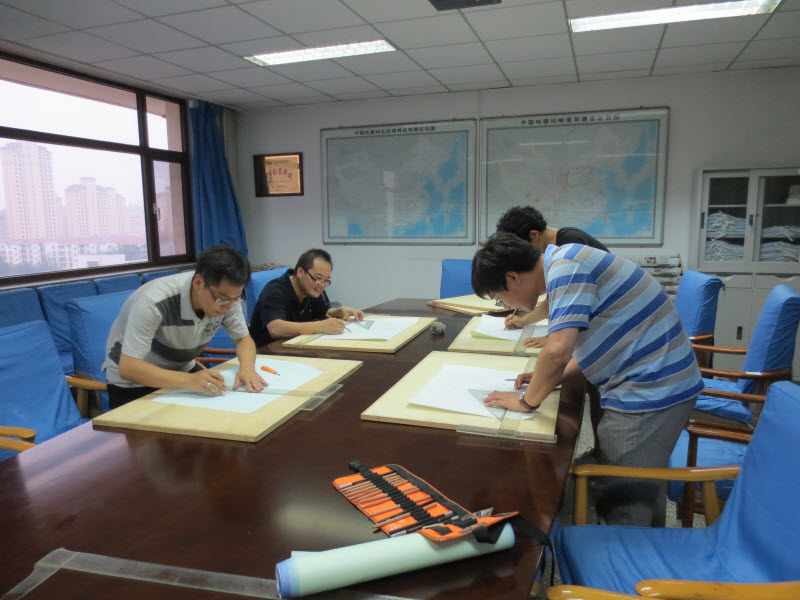 由于时间紧迫,参赛队从组建伊始,便进入了紧张的备赛阶段。公司专门购置了本次比赛所使用的专业技术规范,并提供了绘图板、丁字尺等比赛用具。为了做到比赛、工作两不误,每天下班后,参赛队员们都会利用晚上的休息时间集中到804会议室进行赛前准备学习和模拟训练。大家仔细研读了本次大赛的技术文件,明确备战重点。对于理论考试部分,大家根据技术条件中列出的规范知识点进行有针对性地强化学习;对于实际操作比赛部分,大家根据技术条件设计了模拟试题,并进行了集中训练,温习了图板手工绘图。经过赛前准备,大家对本次大赛做到了有的放矢、了然于胸。