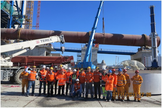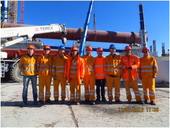 回转窑吊装的顺利合拢,得到了业主及监理的一致好评,意大利水泥欧洲区总经理Fabrizio Donega,CTG副总经理Matel Maconi及Devnya水泥厂总经理Serge Schmidt专程赶到现场向我们表示祝贺。大家在现场合影,每个人的脸上都洋溢着开心的笑容。此后,业主项目经理Massimo Della Gora特意到项目部再次向大家表示感谢与祝贺。