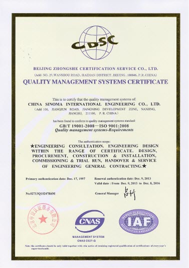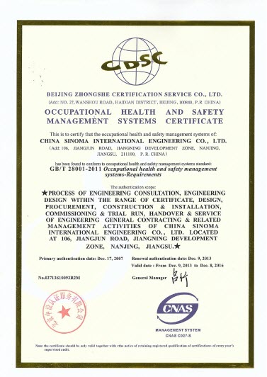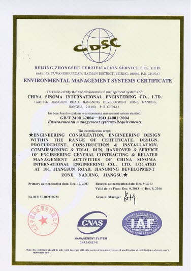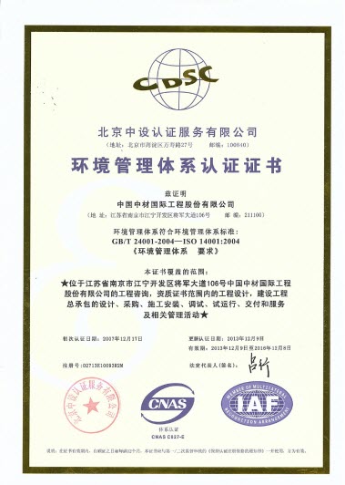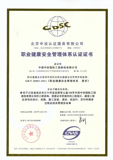 2013年,尊龙凯时(南京)质量、环境和职业健康安全管理体系符合GB/T 19001-2008《质量管理体系 要求》、GB/T 24001-2004《环境管理体系 要求》和GB/T 28001-2011《职业健康安全管理体系 要求》的要求,公司的持续改进机制有效,管理体系持续有效运行。尊龙凯时(南京)顺利通过了北京中设认证服务有限公司的外部审核,近日获得新版质量、环境、职业健康安全管理体系认证证书。