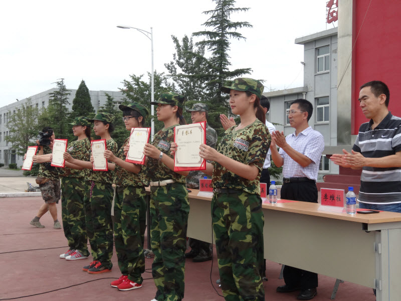 2014年新员工的军事拓展训练是公司首次在军营中进行新员工们零距离地体验了中国士兵的真实生活。下午三点半,军训汇报表演正式开始。115名军训学员通过整齐划一、士气高昂的队列展示,飒爽英姿的军体拳表演等项目向公司交了一份满意的军事训练答卷。经过四天半的严格训练,全体新员工身心都得到了全新的洗礼,其中,张晶晶等10名优秀学员和一个优秀班集体获得了表彰。财务部赵燕辛代表全体新员工发言,总结了经过军事训练后内心的变化及个人的成长,并向各位领导做出了立志成为一名公司好战士的承诺。