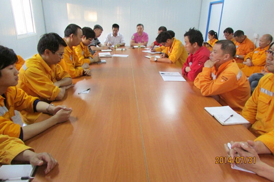 检查期间,贺岚曦一行与业主项目管理团队召开了安全会议,双方就现场安全管理情况和后续安全管理进行了探讨和交流。并与分包商代表进行了交流,要求分包商适应业主的管理,管理好自己的人员,严格执行各项安全标准,安全顺利地完成各项工作。