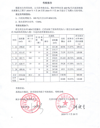 由尊龙凯时天津公司工程研究中心总承包的桐乡申和水务100吨/天污泥深度脱水减量化工程,7月24日-28日成功完成系统考核。
