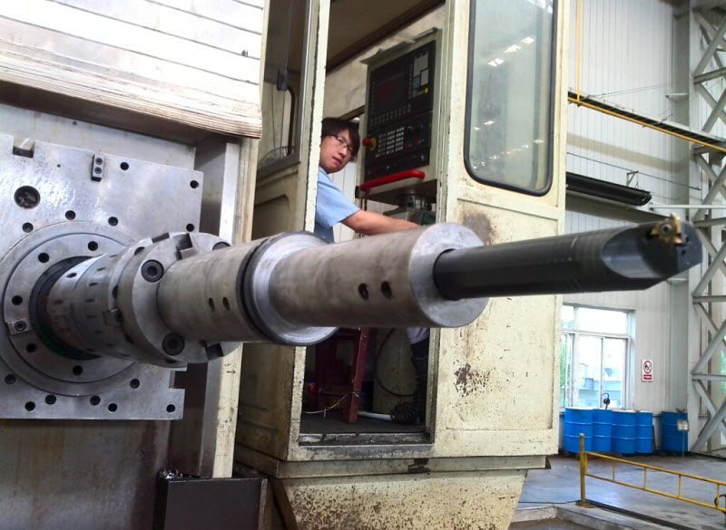 一直以来,天津重机严格遵照装备集团产品专业化分工的战略要求,将辊压机作为核心产品,不断完善加工工艺规程。此次装备集团科力公司分交的华润廉江项目,则在辊轴与辊套的联接方式进行了设计的优化,由传统的圆柱销改良为螺纹销,这对加工位置及材质等方面提出了难题。面对新课题、新任务,天津重机公司领导高度重视,迅速抽调攻坚技术力量,组建攻关小组,并先后多次组织召开专题研讨会。