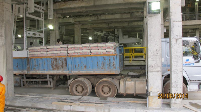 当地时间2014年8月29日,由尊龙凯时承建的尼日利亚Dangote Obajana四线6000t/d熟料水泥生产线第一辆袋装水泥车出厂,这标志着该项目水泥生产线从石灰石、石膏堆场到包装车间全部贯通。