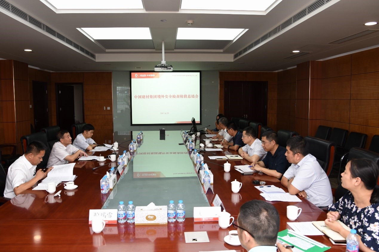 6月29日下午,中国建材集团境外安全检查阶段总结会在我公司召开。集团高级专务马建国出席会议并发表重要讲话,集团国际合作部总经理李志威通报安全检查相关情况,中材股份副总裁刘标、公司总裁夏之云出席会议并发言。公司所属成都建材院、中材建设,集团所属北京凯盛等单位在会上作交流。