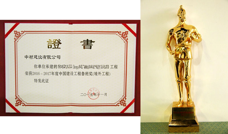 2017年11月6日,由中国建筑业协会主办的纪念鲁班奖创立30周年暨2016~2017年度创精品工程经验交流会在北京钓鱼台国宾馆隆重举行,中材建设保加利亚代夫尼亚(Devnya)水泥厂4000t/d熟料生产线EPC总承包项目(以下简称“保加利亚Devnya项目”)荣获“中国建设工程鲁班奖(境外工程)”。中材建设常务副总经理王晖、保加利亚Devnya项目经理王彬、质量控制部部长耿锋涛出席本次会议,王晖代表中材建设上台领奖。