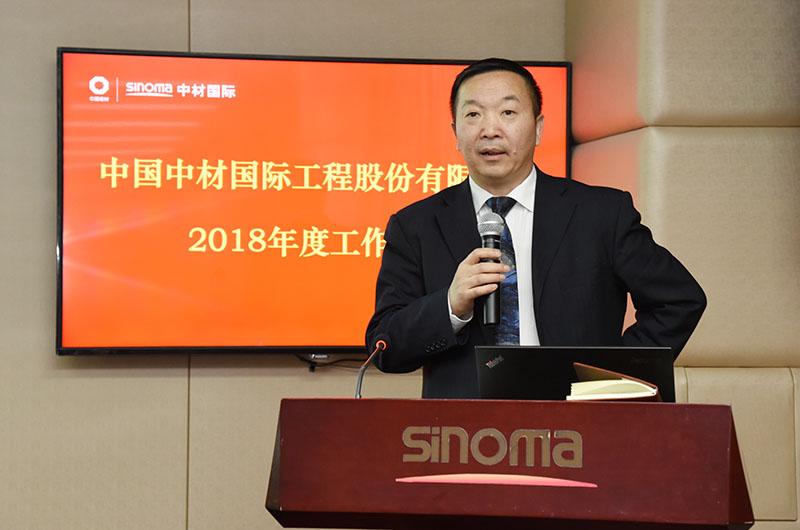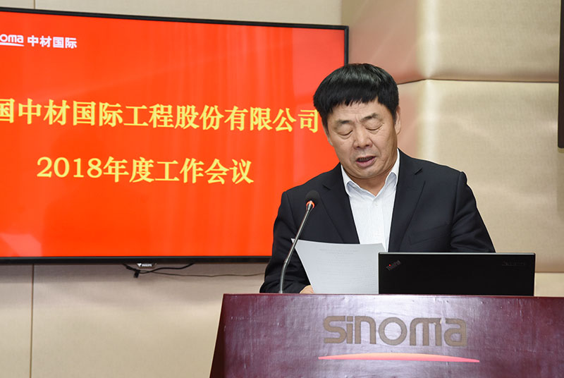 宋寿顺董事长作题为《鼓足干劲、力争上游、为“十三五”战略有效落实努力奋斗》的讲话。他指出,过去一年,公司经营绩效优异,改革亮点纷呈,全面完成了“稳增长”任务,向上级单位交出了一张满意的答卷。当前,公司应紧紧抓住大有可为的历史机遇,强化“一带一路”、国际产能合作和绿色发展布局,把习近平新时代中国特色社会主义思想、党的十九大精神、集团工作会精神全面贯彻到公司改革发展的全过程、各领域。2018年,公司将紧密围绕集团“创建具有全球竞争力的世界一流建材企业”目标,以“高质量发展”为主线,坚持国内国外“两个市场”,按照“十三五”战略发展规划格局,全力推动各领域的生产经营、管理提升、改革创新、党建工作步伐。他强调,各单位要组织干部员工对集团工作会、公司工作会精神进行认真、反复地学习,做到“深领会、勇担当、真落实”,切实将讲话精神贯彻落实到各自的工作会要求中,用集团的战略思想和核心文化来武装头脑,全力推动年度各项工作开展,用业绩说话,用数据说话,用改革创新的成绩说话,为集团创建具有全球竞争力的世界一流企业持续贡献力量。