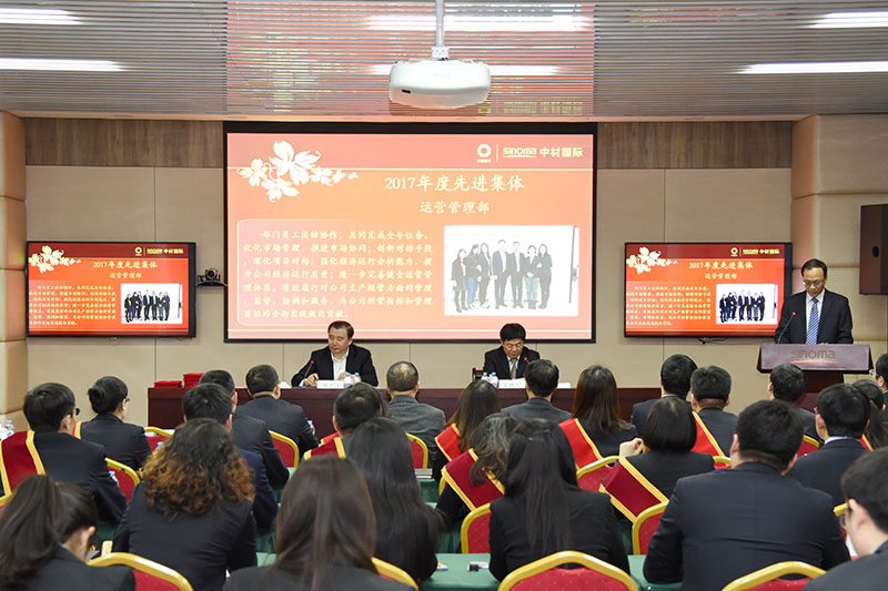 会议对2017年度总部先进集体、先进员工和先进中层干部进行了表彰。蒋中文副总裁代表公司宣读表彰决定。他指出,2017年,公司在战略发展、改革创新方面取得了不俗的成绩,这离不开全体员工的共同努力。这其中,涌现出了一批表现格外优异、贡献尤其突出的集体和个人,为树立典型、表彰先进、激发干劲,公司对先进集体和先进个人予以表彰,希望受到表彰的先进集体和个人再接再厉,继续发挥表率作用,希望全体员工以先进为榜样,鼓足干劲、不懈努力,开创公司总部工作的新局面。随后,公司副总裁、财务总监倪金瑞对先进集体及个人的事迹进行了介绍。安全生产管理刘尧代表优秀员工进行了发言。