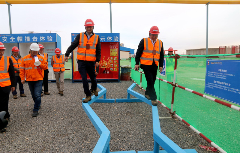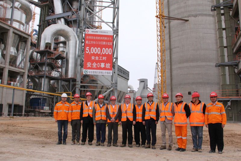 3月26日,刘志江抵达阿尔及利亚BC 2X6000t/d项目现场进行实地调研。经过安全培训之后,刘志江首先实地参观了项目部设立的“体验式安全培训区”并亲自体验了部分培训项目。在施工现场,沿着两条水泥生产线主要工艺实施节点,详细了解了BC项目两条生产线的工艺技术特点、创新工艺及工法、施工安全、质量控制和项目进度。对BC项目A线实现提前四个月点火、塔架76天实现结构和设备封顶、生料库减压锥预制分片吊装、熟料库无中心柱组对吊装等施工记录和创新实践表示了高度认可,对BC项目良好的项目组织、施工创新、打破多项施工时间记录提出了高度赞扬,并鼓励BC 2X6000项目争创“境外鲁班奖”。