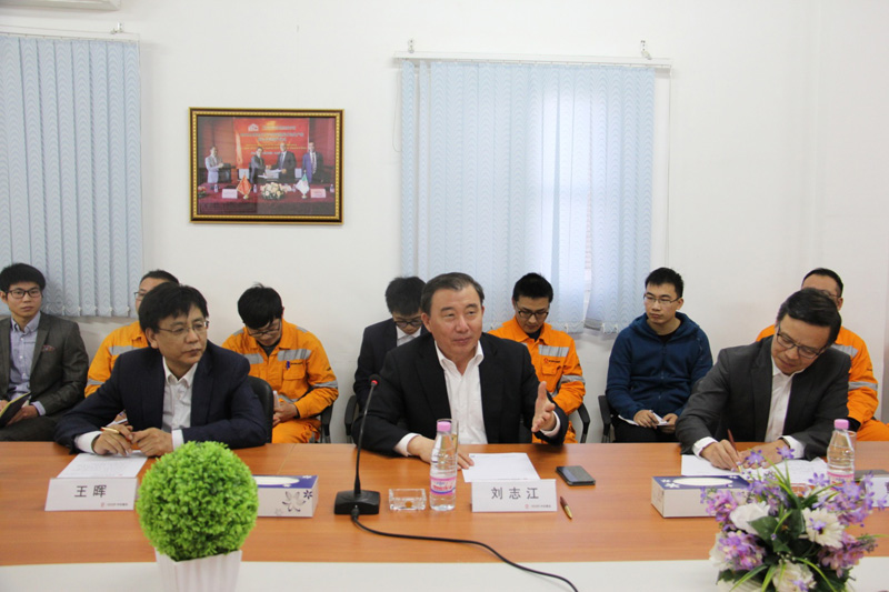 听取汇报后,刘志江作重要讲话。他首先代表集团向辛勤工作在海外一线的干部员工们致以亲切问候,并对中材建设在阿取得的业绩给予充分肯定。他指出,中材建设充分发挥自身优势,在阿尔及利亚努力开拓市场并树立了优秀品牌形象,为集团在海外的发展做出了重要贡献。他还指出,中材建设阿尔及利亚区域落实公司整体战略到位,落实“做优、做强、做大”到位;创新主体明确,以项目为主体开展创新,创新和施工、加工相结合,进行一体化创新;公司文化很好地融入到了项目管理当中。他强调,要紧密围绕发展战略,把握好发展的方向、思路和模式,做到管理精细化、资源配置精细化。最后,他对中材建设及阿尔及利亚区域提出四点要求:一是要围绕集团发展战略做国际一流企业,做国际产能开拓者、结构转型创新者、资源配置引领者;二是要坚持创新,抓住技术创新,解决发展的动力,以创新来创造客户;三是要做到资源协同化,注意协同区域资源和集团资源,使资源得到最大优化,形成规模,抓住市场;四是切实做好党建和企业文化建设,围绕习近平新时代中国特色社会主义思想,结合“一带一路”政策和集团的国际化战略,加强党建和企业文化建设,打造一支政治能力强、业务素质高、团结协作、作风扎实的党员队伍,为集团在阿尔及利亚取得更大的发展提供坚强保证。