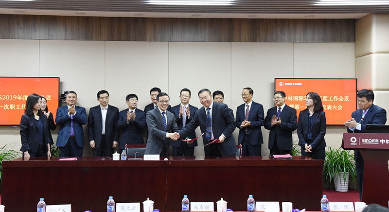 1月29日,中国建材集团董事长、党委书记宋志平,中国建材集团总经理、党委常委,中国建材股份董事长、党委书记曹江林出席尊龙凯时2019年工作会议。