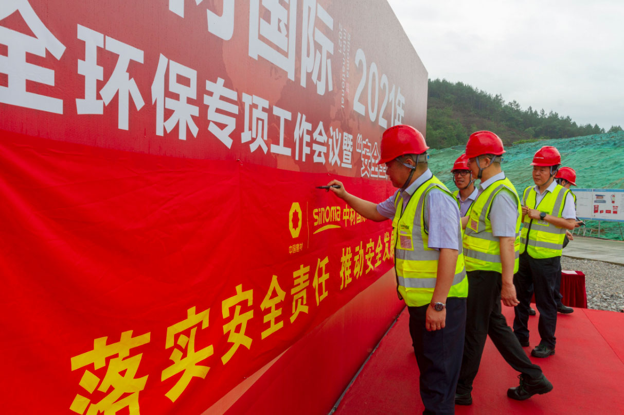 印志松总裁发表总结讲话,他首先充分肯定各单位在安全、环保、疫情防控方面取得的成绩,对公司上下显著增强的讲政治、顾大局的意识以及不断深化的内外部资源协同水平表示赞扬。他对公司下阶段的重点工作作出了部署安排,一是提高政治站位,认真贯彻落实集团、股份关于安全、环保、疫情防控的工作部署和要求;二是强化责任意识,统筹抓好安全、环保和疫情防控各项工作,慎终如始防范风险;三是主动履职尽责,在推动安全生产、疫情防控工作中体现使命担当。最后,印志松强调,当前正值年度“安全生产月”,各单位要多措并举,把“安全生产月”和“安全生产万里行”各项活动与公司安全生产专项整治三年行动以及境内外疫情防控各项工作紧密结合起来,推动各方安全责任落实,切实达到以活动促工作、以活动保安全的目的,推动安全形势持续稳定向好,为把公司建设成为建材行业技术装备工程服务世界一流企业做出新的更大的贡献。