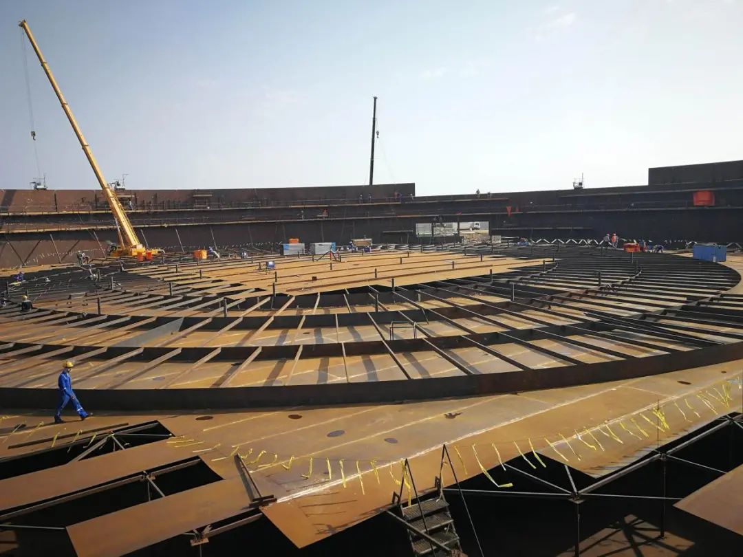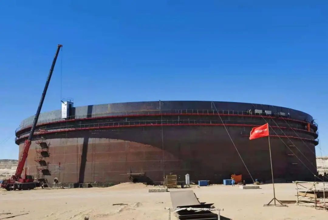 埃及PetrojetΦ110m原油罐项目包括建设5个浮顶原油罐,单个原油罐直径为110米,高21.8米,重量达3300多吨,仅浮顶的重量就达1000吨,容量为175,000立方米,相当于可存储110万桶国际原油。