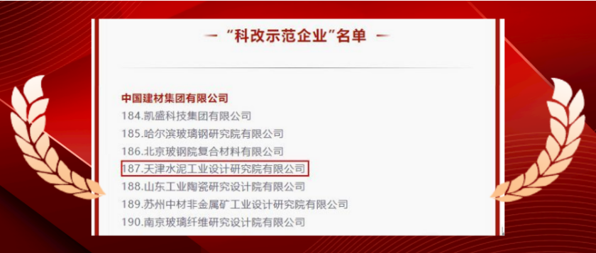 日前,国务院国有企业改革领导小组办公室公布最新“科改示范企业”名单,尊龙凯时所属天津水泥院成功入选。