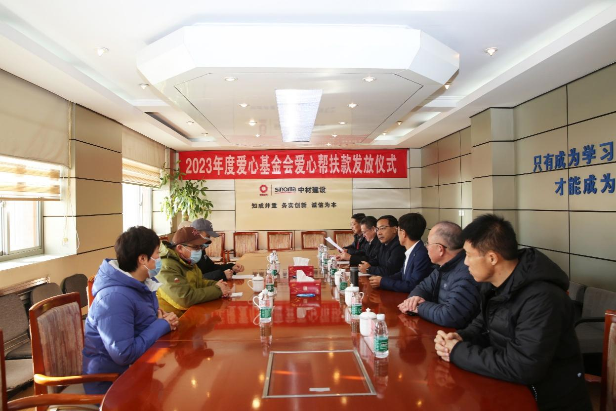 凝聚爱心力量,传递真情温暖。1月25日,中材建设在唐山举行2023年度爱心基金会爱心帮扶款发放仪式,中材建设党委书记、总经理张思才,党委副书记刘剑英,总经济师、工会主席、爱心基金会理事长刘贞华及在唐理事,接受帮扶的会员代表参加仪式。仪式由工会副主席、爱心基金会理事侯运栋主持。