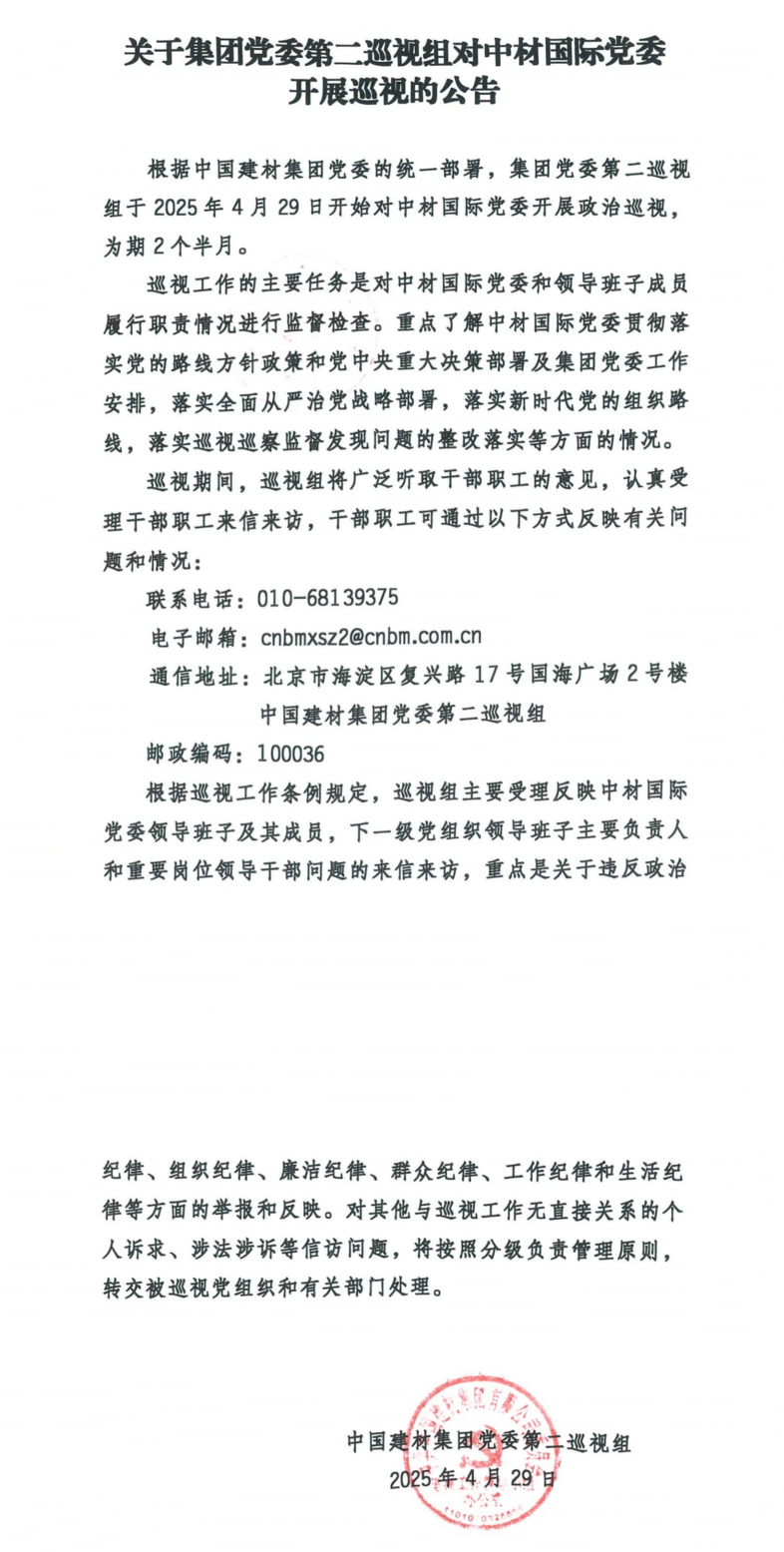关于集团党委第二巡视组对尊龙凯时党委 开展巡视的公告
